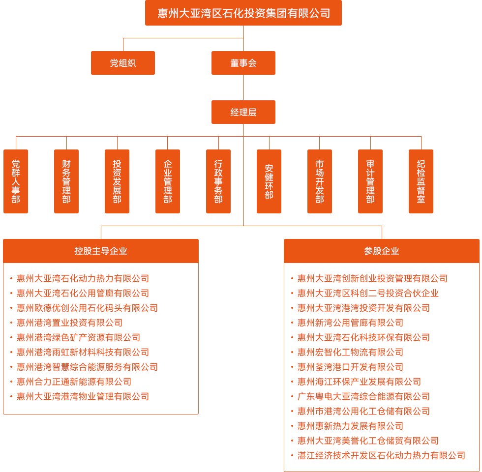惠州大亞灣區(qū)石化投資集團(tuán)有限公司(簡稱石化投資集團(tuán))成立于2008年5月,是大亞灣區(qū)屬國有獨(dú)資企業(yè),截至目前公司注冊資本31.06億元,旗下全資、控股、參股企業(yè)共 22 家。公司自成立以來,始終秉持“為世界級綠色石化高地提供一流的公用配套服務(wù)”使命,主要布局綜合能源、物流輸送、生產(chǎn)服務(wù)、重點(diǎn)工程、石化及新材料五大業(yè)務(wù)版塊,聚焦完善集中供熱、管廊、碼頭、倉儲等建設(shè)運(yùn)營,打造“即插即用”的綜合配套體系,助推大亞灣石化區(qū)加速建成“六個(gè)一流”的世界級綠色石化產(chǎn)業(yè)高地。