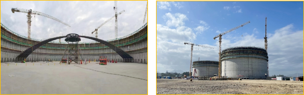 庫區(qū)項(xiàng)目一期用地面積約130000m2,一期項(xiàng)目總投資超過139000萬元,建設(shè)內(nèi)容包括12×104m3預(yù)應(yīng)力混凝土低溫C3儲罐、12×104m3預(yù)應(yīng)力混凝土低溫C4儲罐、4000m3液化烴常溫壓力球罐,以及壓縮區(qū)、泵區(qū)、LPG裝卸車區(qū)、地面火炬等配套工藝設(shè)施(含庫區(qū)與碼頭連接工藝管線,庫區(qū)與??松梨谶B接工藝管線),跨海連接管廊以及消防水罐、應(yīng)急池(罐)、海水取水排水設(shè)施(含取水口、排水口、取水泵站)、變電所等公用工程和辦公樓、控制樓、維修間、倉庫等輔助設(shè)施;一期周轉(zhuǎn)能力250×104t/a。